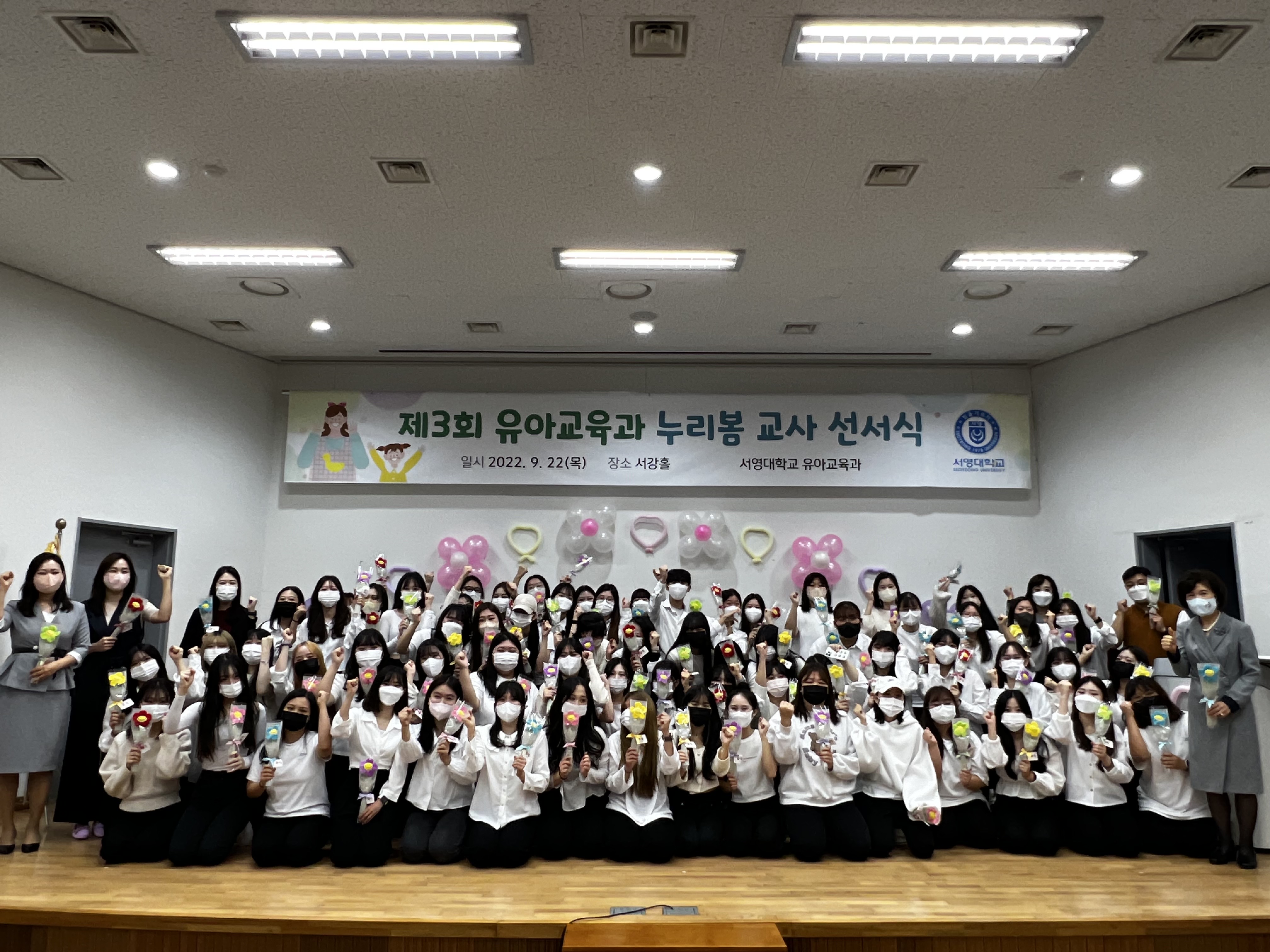 - 내용 : 10월에 진행되는 학교현장실습에 앞서 유아를 사랑하고 이해하는 유능한 교사, 좋은 교사가 될 것을 교사선서식을 통해 다짐하였습니다.