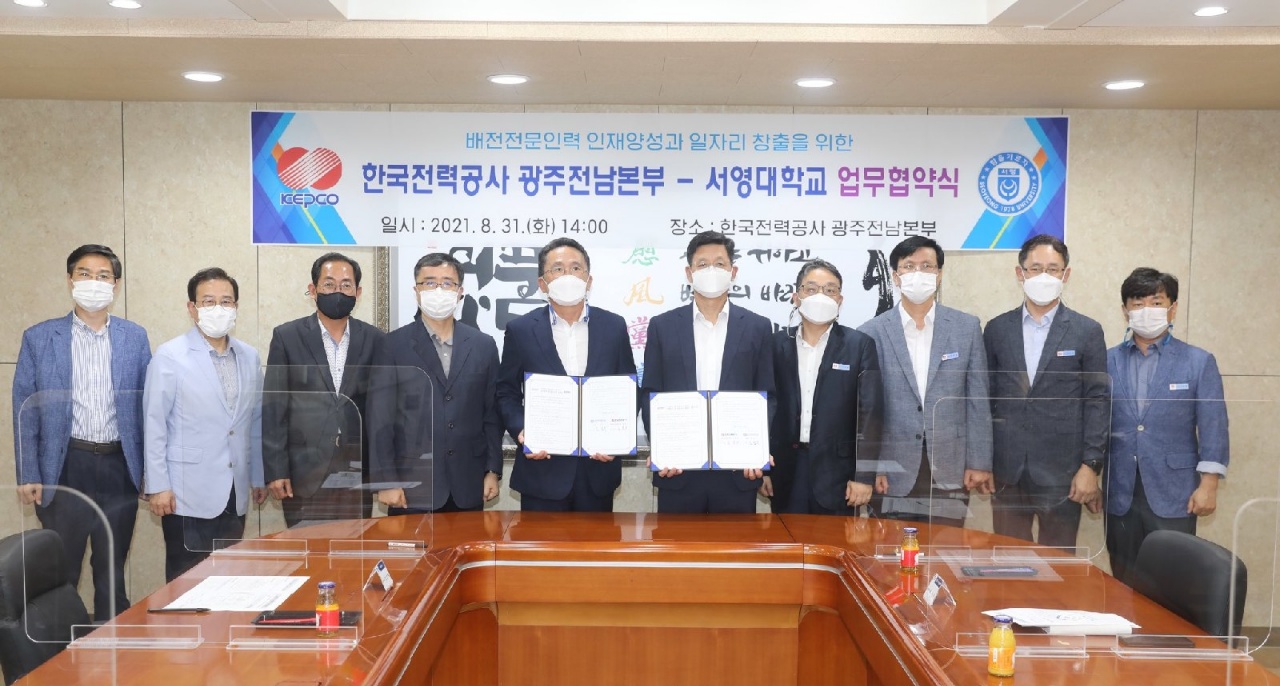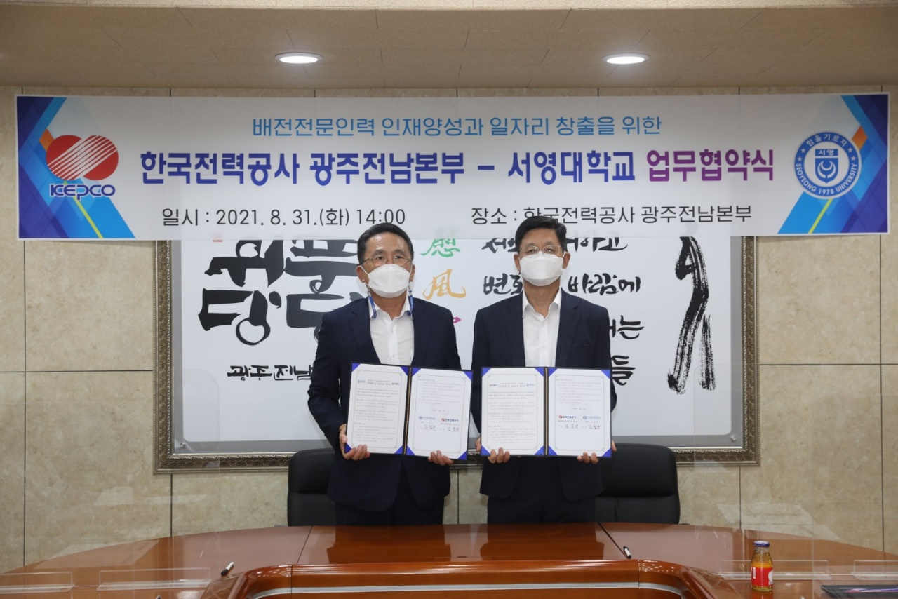 한전 광주전남본부(김상권 본부장)는 8월 31일 한전 광주전남본부에서 서영대학교와 함께 배전전문인력 지역인재 양성을 위한 산학협력 MOU를 체결했다.