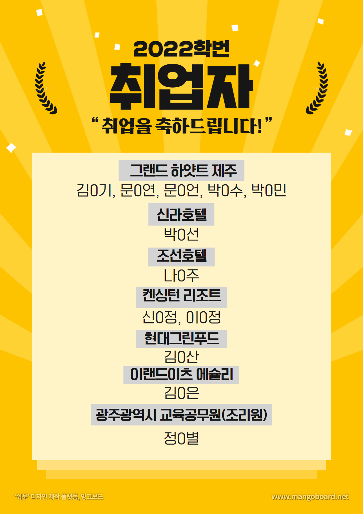 이번에 졸업한 22학번들 중 취업자들입니다