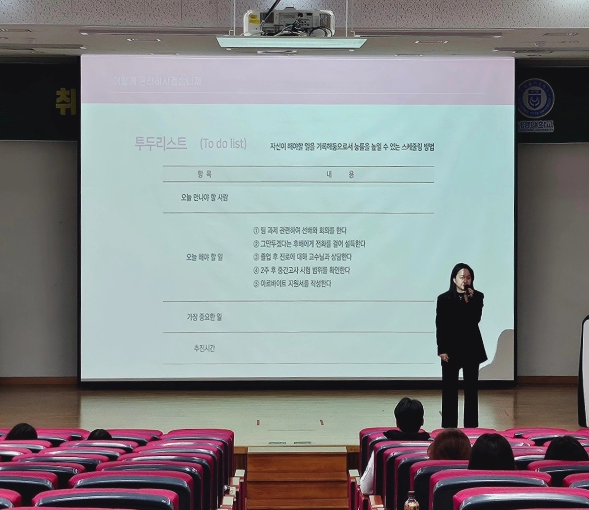"취업 성공을 위한 대학생의 시간관리 전략"이라는 주제로 특강을 진행하였습니다 ^^