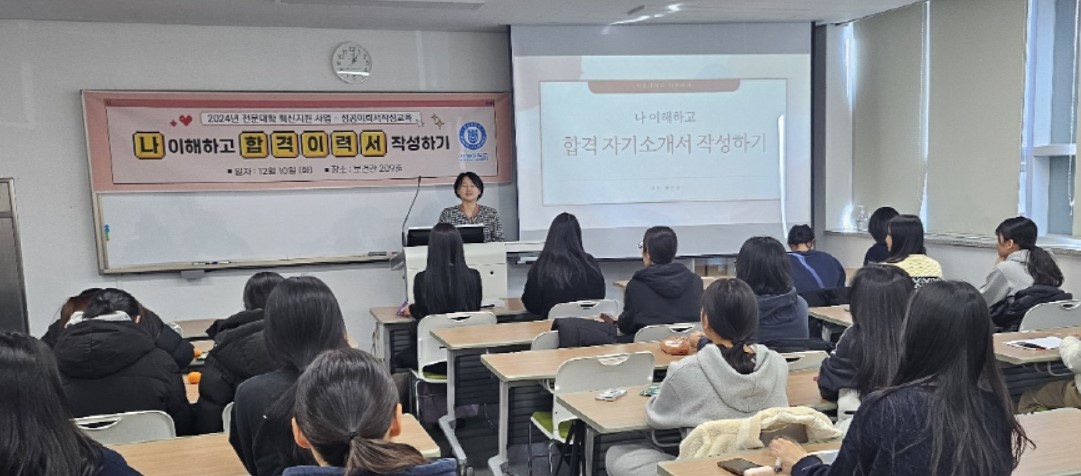 "나 이해하고 합격이력서 작성하기"라는 주제로 이력서 및 자기소개서 작성법에 관한 특강을 진행하였습니다.