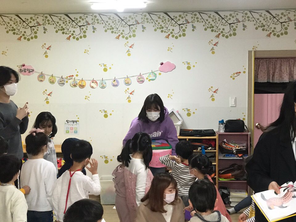 문산 예림어린이집에 방문하여 예비 보육교사인 보육실습을 마친 학생들이 어린이집 원생을 대상으로 멸종위기 동물과 환경에 대한 환경교육 재능기부 봉사활동을 진행하였습니다.