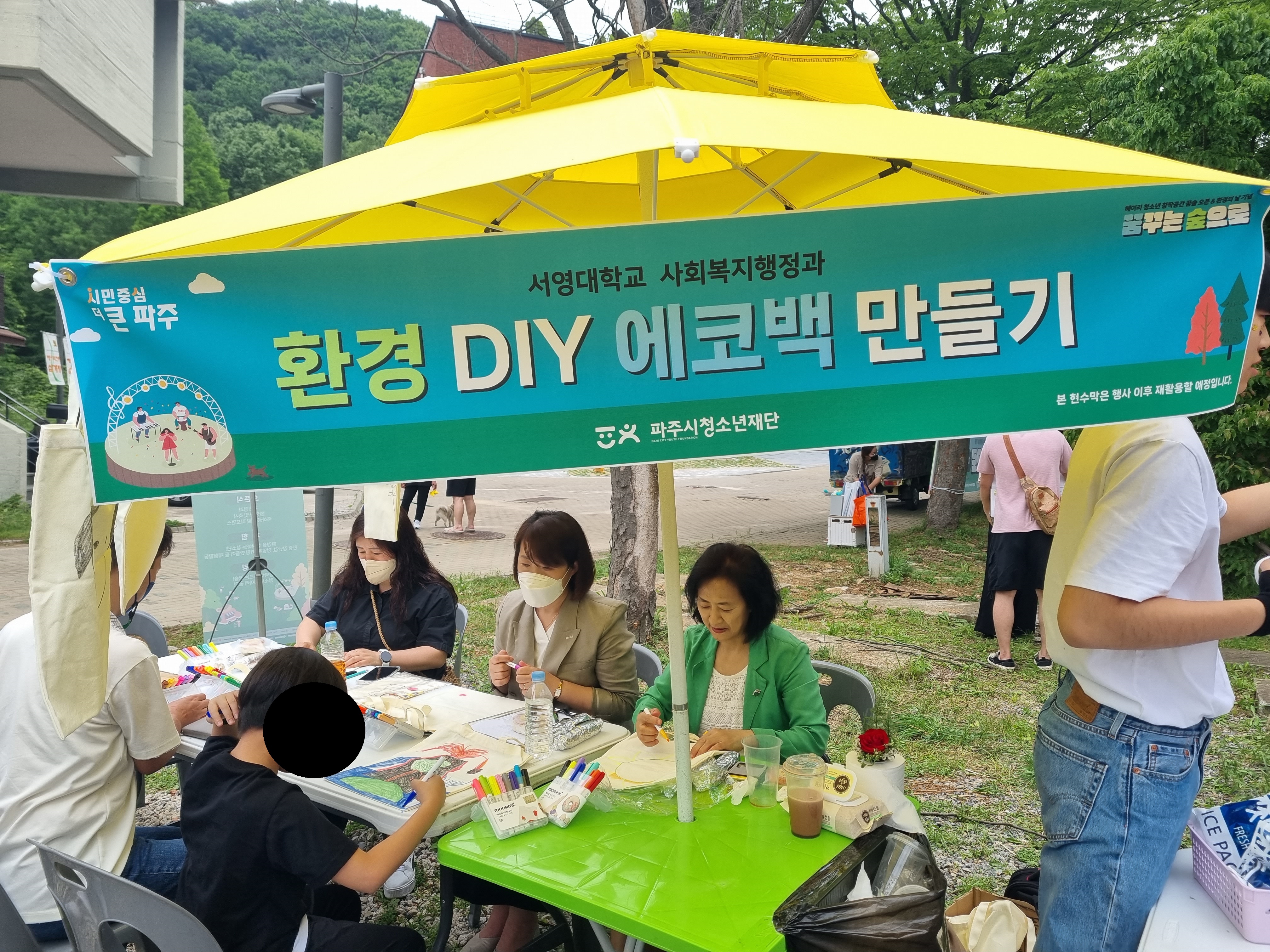 학생들은 환경 DIY 에코백 만들기 부스를 직접 운영하였는데요. 지역주민 및 행사 방문자들의 많은 참여와 관심이 있었습니다.