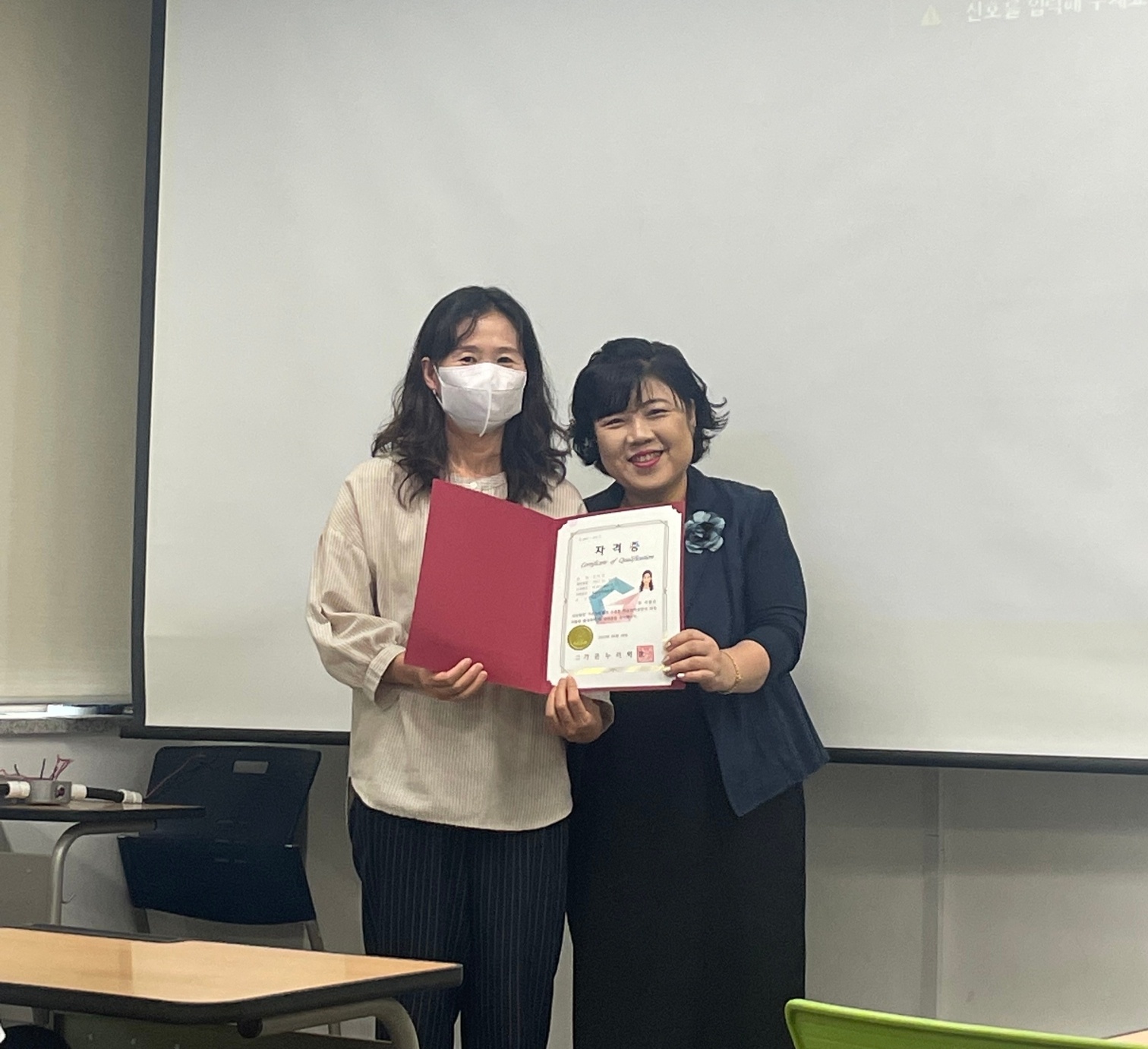 안녕하세요. 방학동안 진행하였던 미술심리상담사 취득 과정을 다 수료하고 자격증 수료식을 진행하였습니다.