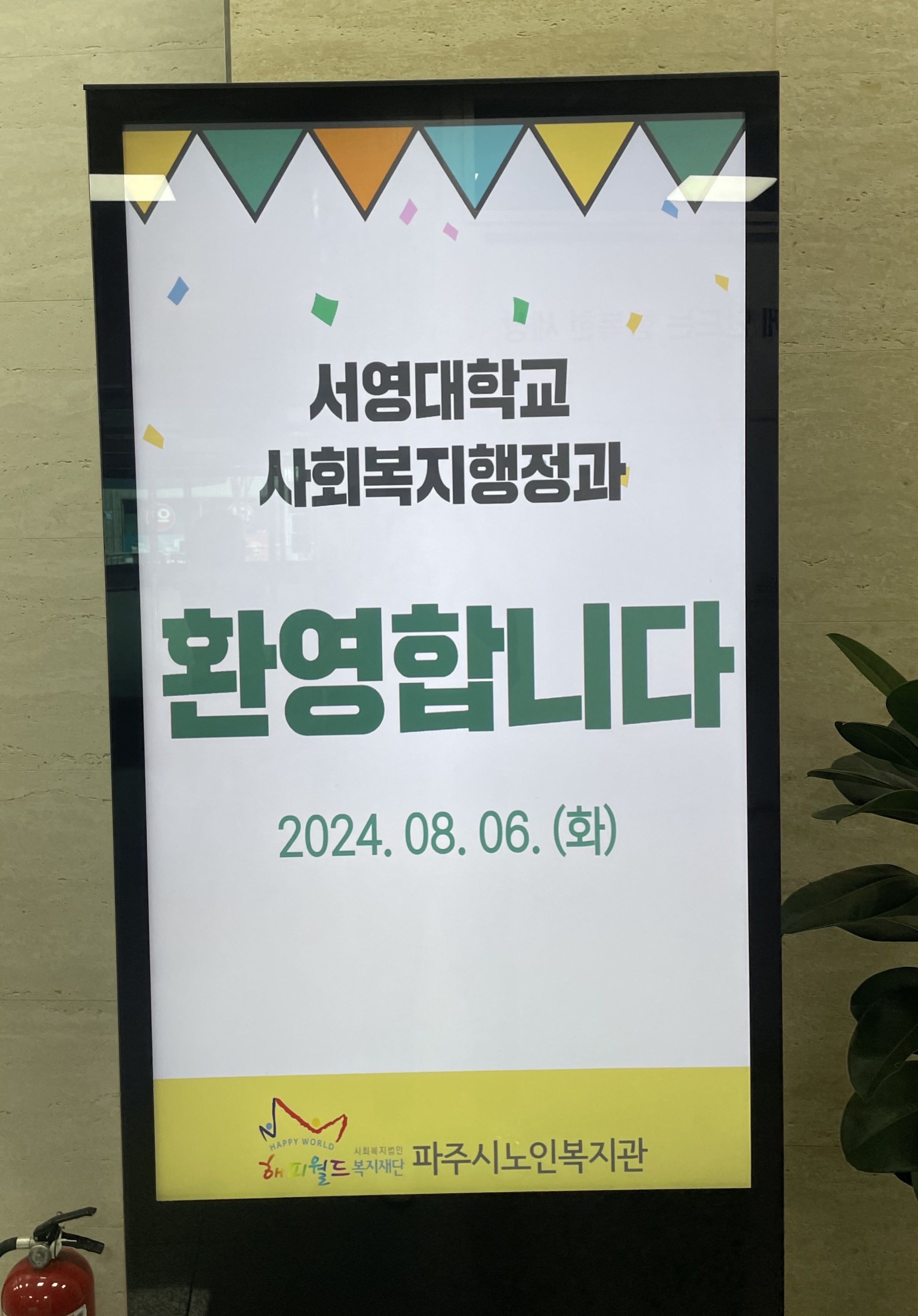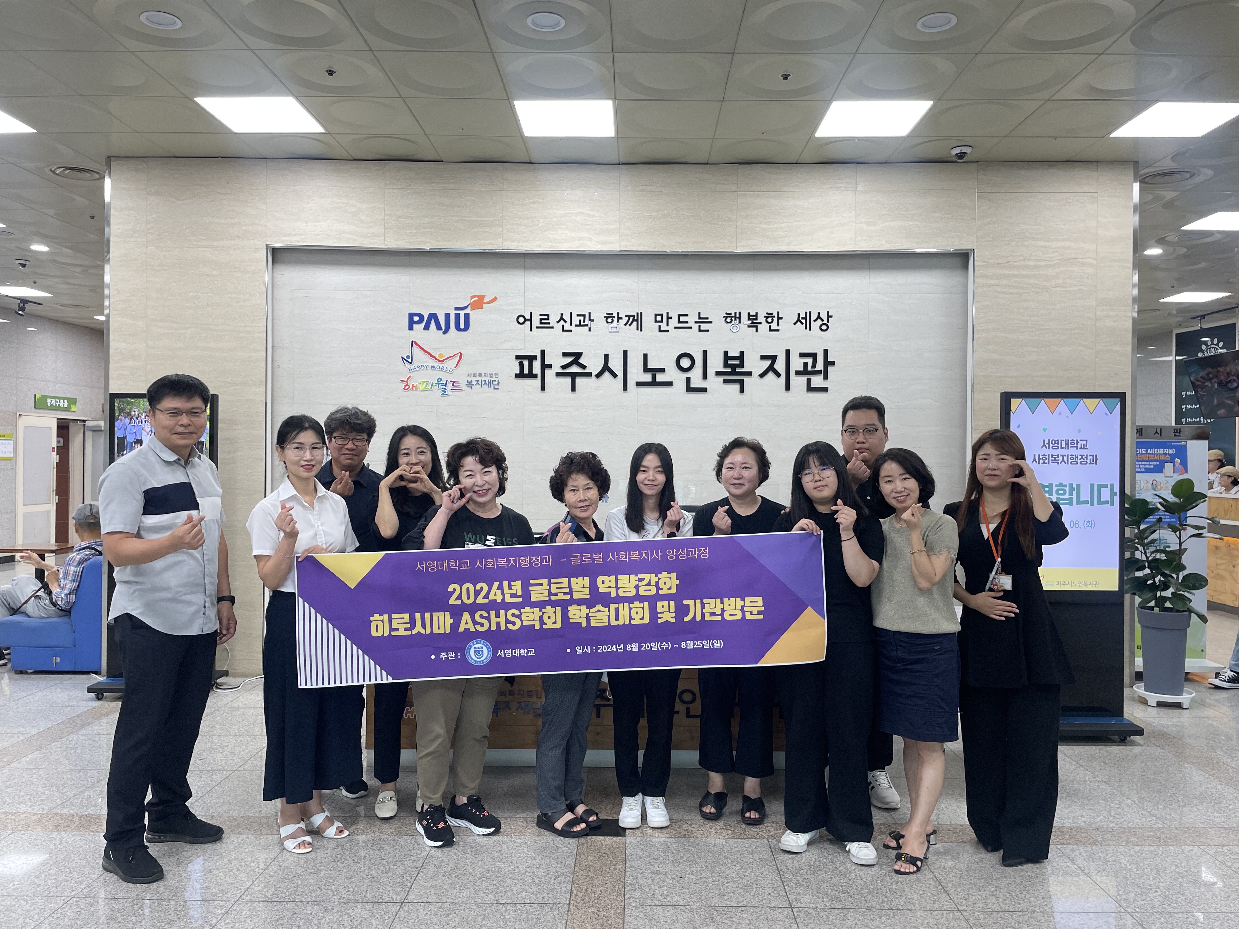 2024년 8월 6일, 서영대학교 사회복지행정과 학우분들은 파주시 노인복지관을 방문하였습니다. 이번 견학은 일본 히로시마에 있는 사회복지기관방문과의 비교 분석을 위한 준비 과정으로 진행되었습니다.